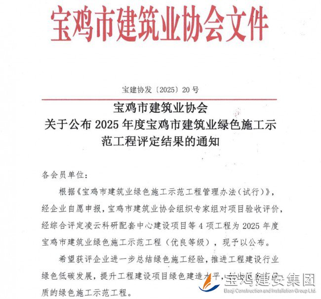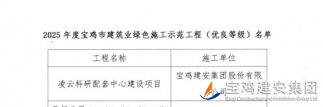公司承建的凌云科研配套中心建设项目荣膺“2025 年度宝鸡市建筑业绿色施工示范工程”称号